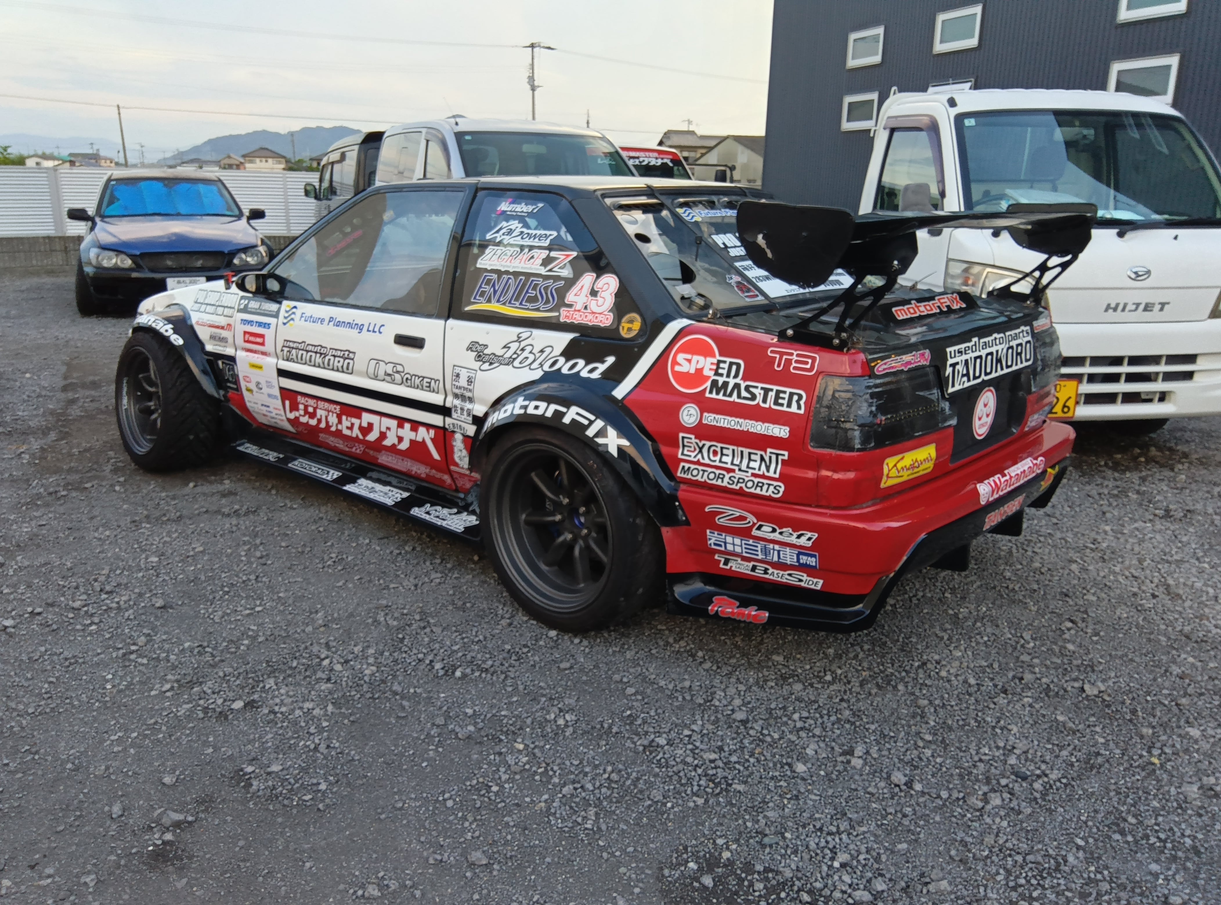 D1田所選手、FDJ3前田選手、AE86でドリフトするには必須アイテムのゼグラスナックルステッカー。